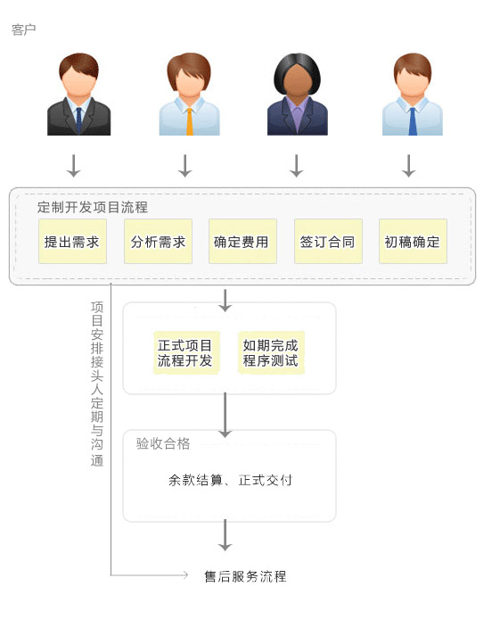 客戶簽發(fā)《模板驗(yàn)收合格書》后,將所有項(xiàng)目文件遞交客戶;或應(yīng)客戶要求,將項(xiàng)目直接上傳至客戶服務(wù)器上。至此,項(xiàng)目建設(shè)過程全部結(jié)束。客戶如需公司為其進(jìn)行項(xiàng)目建設(shè)后的日常更新和維護(hù)工作,需另外與公司簽訂《項(xiàng)目更新維護(hù)協(xié)議》。